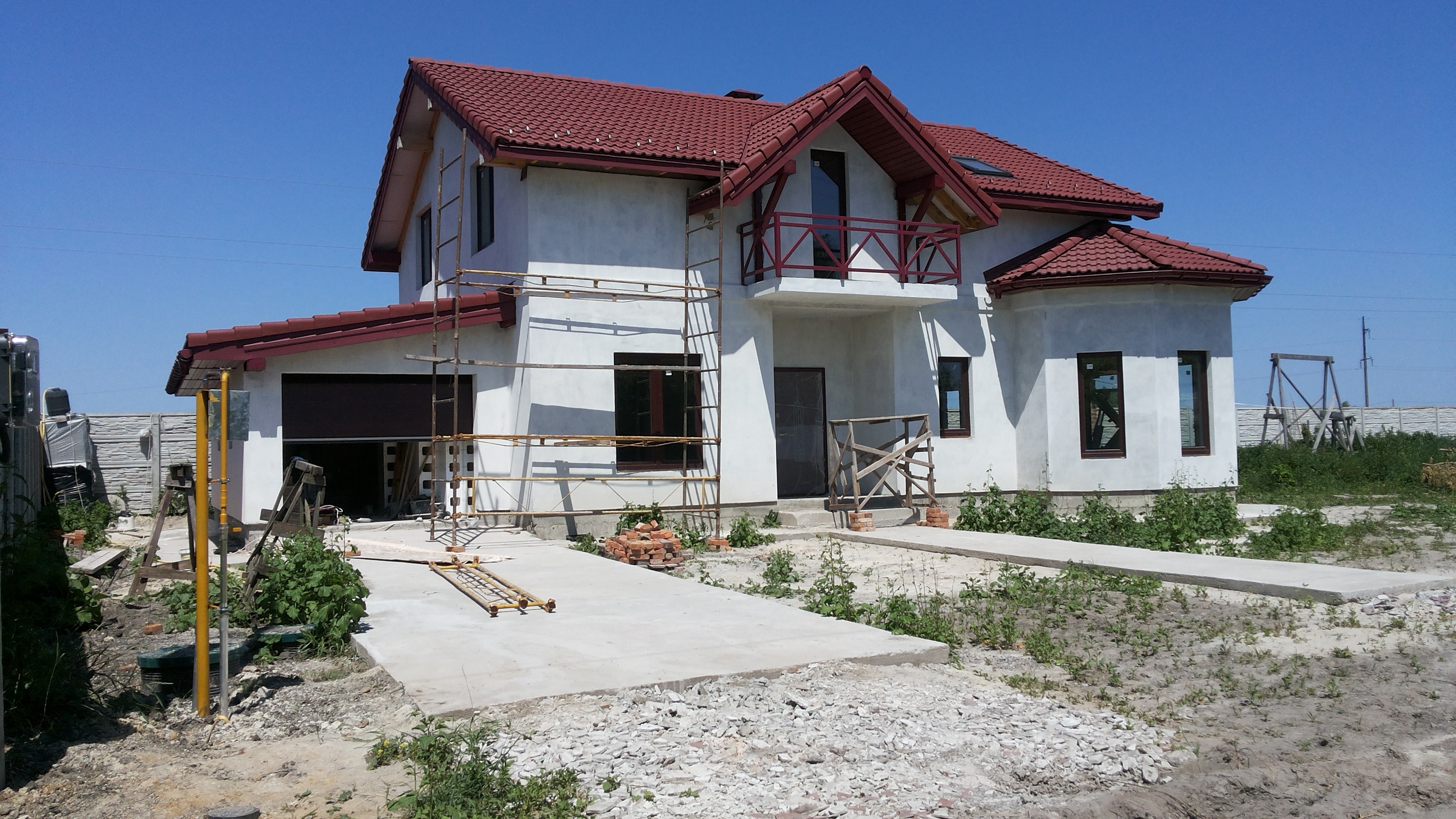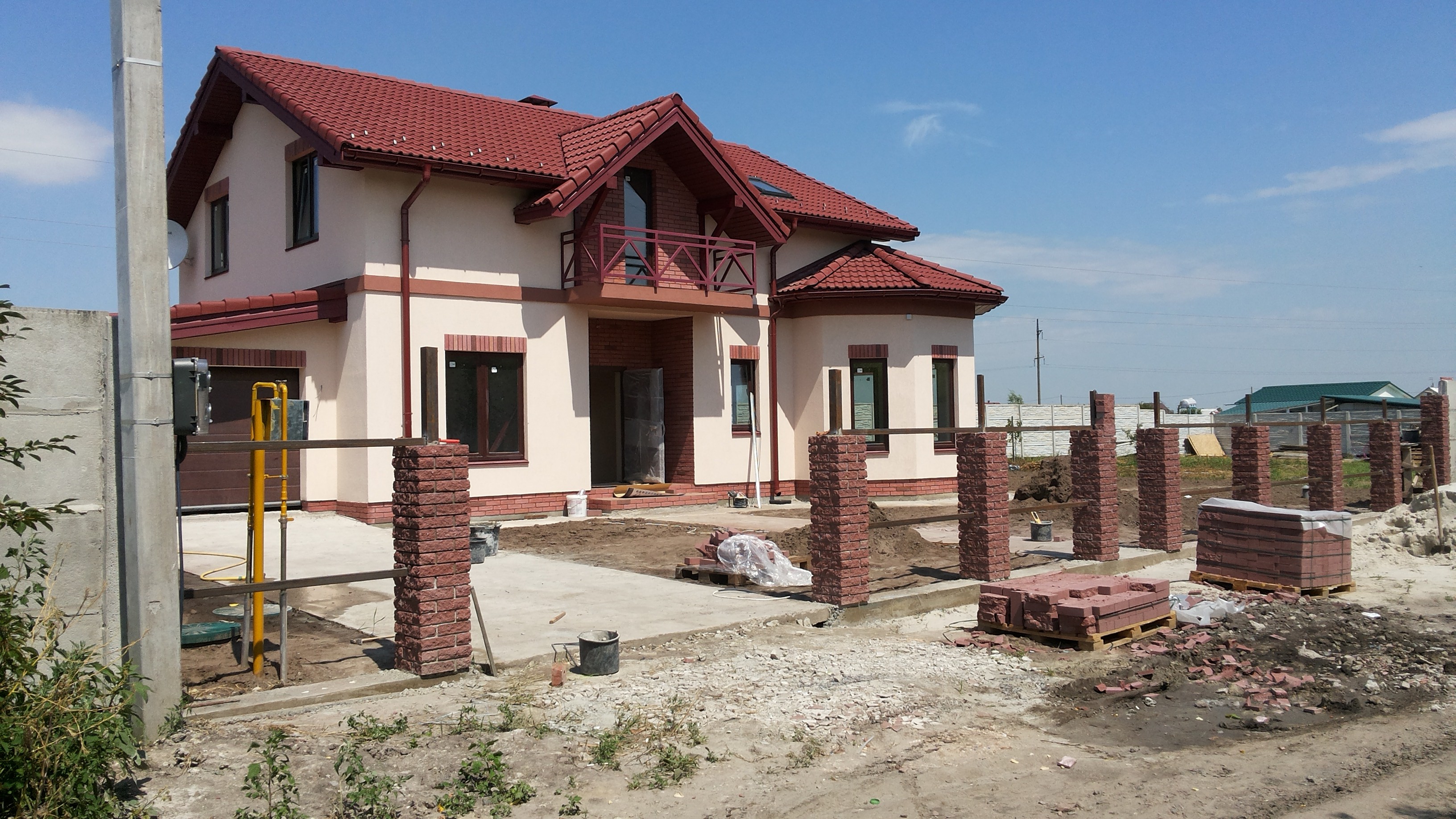 На основі проекту, готуємо календарний план його реалізації. Графік поставки матеріалів і технологічну карту виконання робіт.Організовуємо будівельний майданчик, місця прийому і зберігання матеріалів. Завозимо необхідні інструменти і облаштовуємо битовку. Забезпечуємо побутові умови і безпека робіт. Оснащуємо об'єкт водопостачанням і електрикою. Приступаємо до реалізації проекту з виносу будови на ділянку. Робимо вертикальне планування ділянки. Фундаментні роботи. Закладаємо труби горизонтальної каналізації та встановлюємо зовнішні кільця приймача. Гідроізоляція фундаменту. Наступний етап - зведення зовнішніх і внутрішніх стін. Облаштування каналів вентиляції, фанових виходів і димоходів будинку. Монтаж армопоясу і перекриття. Облаштування виносів балконів, терас і конструкцій сходів. Після чого виконуємо комплекс покрівельних робіт. Заливка поверхових стяжок підлог. Встановлення віконних і дверних систем.Завершуємо роботи оздобленням фасадів та монтажем зливостоків.